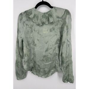 Free People Sascha Ruffle Tie Front Blouse in Sage Combo Size Small