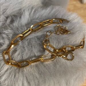 Elegant gold paper clip bracelet 7 inches with a 2 inch extender, lobster claw clasp new without tags perfect for any occasion. Add a touch of sophistication to your outfit.