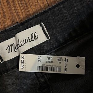 NWT Madewell Curvy High Rise Stretch Soft Black Distressed Skinny Jeans Size 28