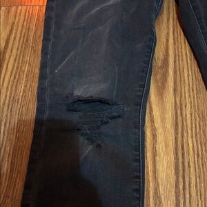 Chic black skinny jeans with distressed details. Perfect for a modern look.