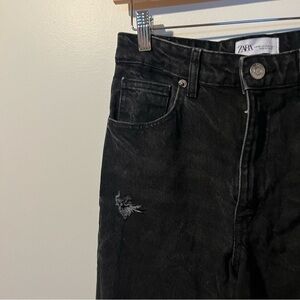 Zara High Rise Distressed Wide Leg Jeans in Black | size 6