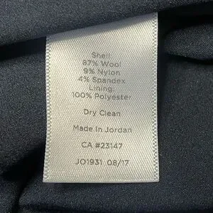 - Material: Shell: 87% Wool, 9% Nylon, 4% Spandex; Lining: 100% Polyester