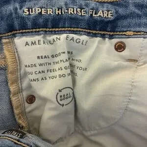 American Eagle Super Hi-Rise Flare Ripped Jeans Women’s 10 Blue