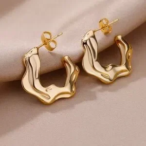 Zara 18k Gold Color Plated Wave Design Gold Hoop Earrings