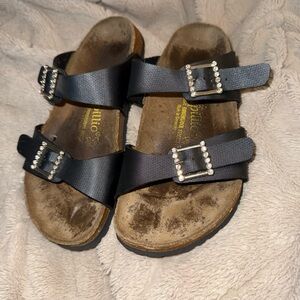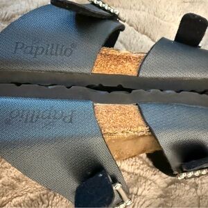 Birkenstock Papillio Black Rhinestone Double Strap Slide Sandals Size 39/8
