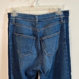Elevate your wardrobe with these classic flare denim jeans, featuring a dark denim tuxedo stripe. Perfect for a chic and timeless look.