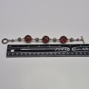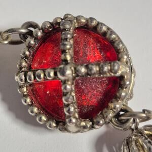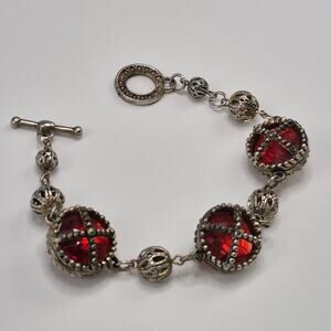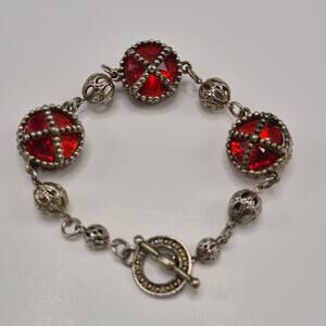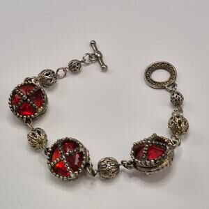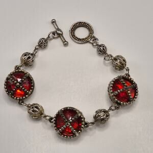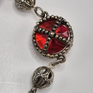 Vintage Medieval Victorian Style Bracelet Silver-tone and Red Stone Toggle Close