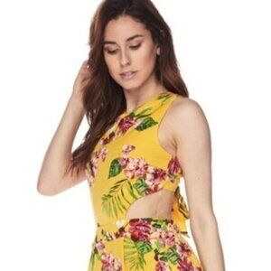 FLORAL JUMPSUIT featuring full length bottom, cut out waist, and a sexy open self tie back