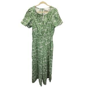 Anthropologie Somerset Linen Jumpsuit Green Print Flutter Sleeve NWT Size Medium