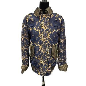 Self Portrait Navy Lace Embroidered Jacket US 8 | 3D Floral Textured Coat