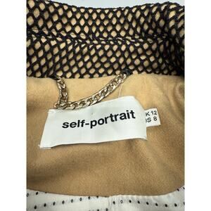This stunning Self Portrait embroidered jacket is a true statement piece — a rare runway-level design featuring 3D raised floral lace, deep navy over nude lining, and contrasting geometric trims.