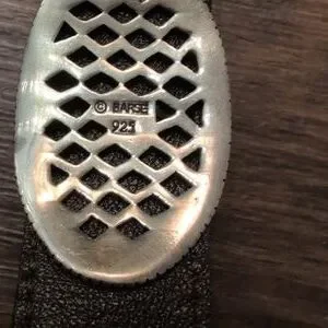 Elegant bracelet with silver and turquoise design on brown leather. Adds sophistication to any look.