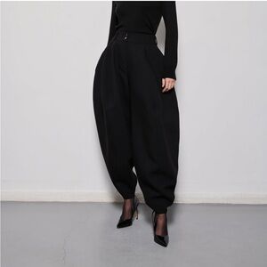 chic black wide leg pants with dramatic silhouette. Very cool!! Designed for both comfort and style, they are perfect for any occasion. Size 40. NEW IN BAG.