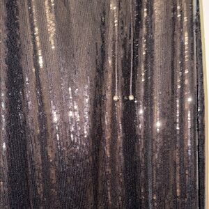 Black sleeveless long sequin dress with an adjustable strings for extra cleavage and support. Slit on the calf up to the knee/mid thigh area. Never worn.