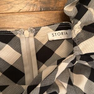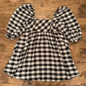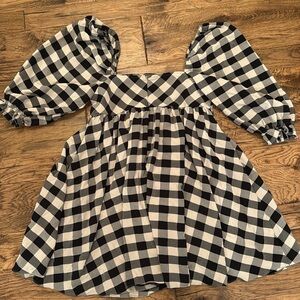 Storia Gingham Babydoll Dress Plaid Mini Black & White Square Neck size L
