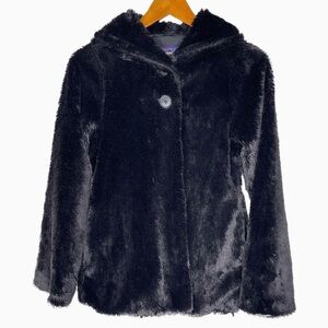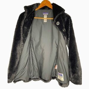 Patagonia Pelage Faux Fur Jacket Girls XL 14 Black Shawl Collar Cozy