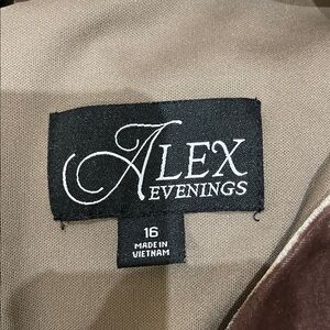 Alex Evenings Ruched Three-Quarter Sleeve Velvet Gown in Mink color Size 16