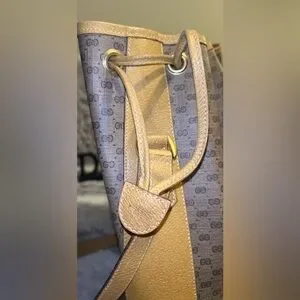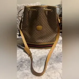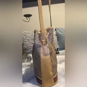 Up for grabs is this preowned and preloved gorgeous Vintage Gucci bucket bag. Iconic pattern with green and red stripes. Not too big, not too small. Drawstring closure.