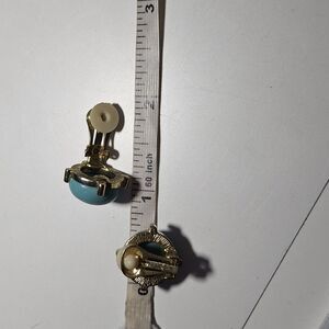 Add a touch of vintage glamour to your outfit with these beautiful clip-on earrings. The gold tone metal and round blue beads give a timeless and classic look that is perfect for any occasion. The clip-on closure ensures that these earrings are comfortable to wear all day long, making them a great addition to your jewelry collection. The beaded style and main stone color add a pop of color to any outfit, while the base metal gives a sleek and sophisticated finish. These earrings are a must-have for anyone who loves vintage and antique jewelry.