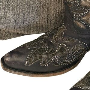 Corral Women's Inlay Western Boot Snip Toe - A3859 Size 7.5 Studded Black Brown