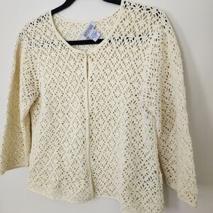 Cream Crocheted 3/4 Sleeve Cardigan Top