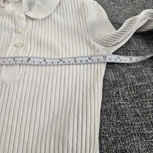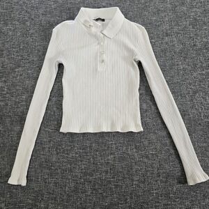 Zara Cropped Ribbed Long Sleeve Polo Shirt Size Women's Small White Stretch