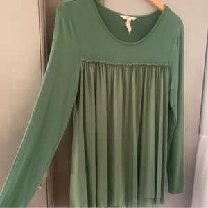 This stylish olive green top is perfect for any occasion. Its comfortable fit and elegant design make it a must-have in your wardrobe. In excellent preowned condition.