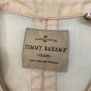 TOMMY BAHAMA SHIRT MENS M MEDIUM MAZE LINEN ISLAND CRAFTED TAB SLEEVE BUTTON UP