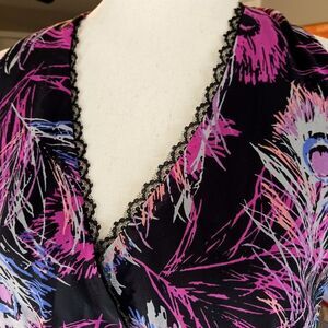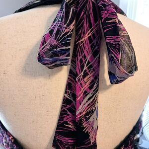 PURE ENERGY Halter Top Dressy Summer Long Sheer Peacock Print Pink Plus Size 4X