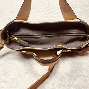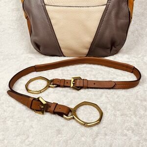 orYANY Lian Hobo Shoulder Bag Color Block Leather Gray Beige Tan Top Handles
