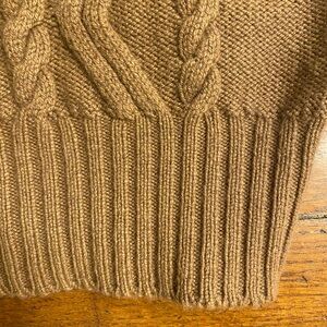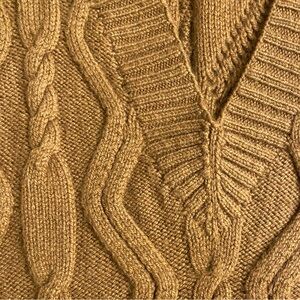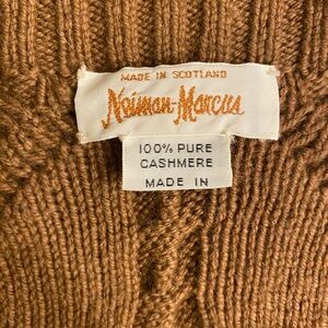 VTG Cashmere 100% Neiman Marcus V-Neck Cable Knit Sweater Camel Tan Scotland