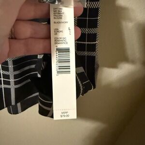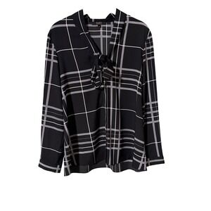 Alex Marie Paulina Blouse Black Ivory Plaid Tie Neck Long Sleeve Women L