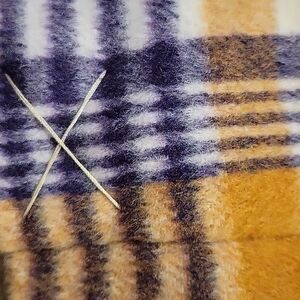 Chic plaid design with double-breasted front. Features bold orange and black pattern. Perfect for stylish warmth.