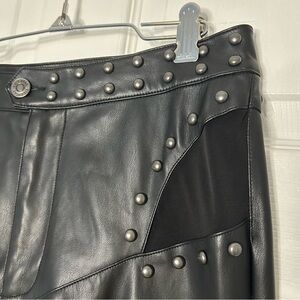 Unleash your inner rockstar with Manticore’s Muse flares by Killstar. Featuring a daring side cut-out design with mesh inserts and dome stud detailing, this boot cut pair makes a bold statement. Light, black, vegan leather ensures a crisp silhouette, making them an easy choice for an evening at the concert, head banging to your favorite band!