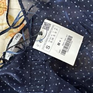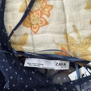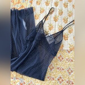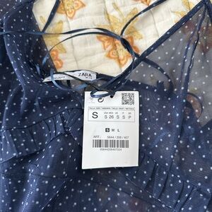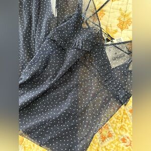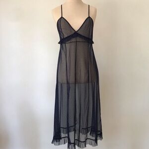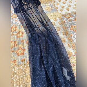 NWT Zara Mesh Ruffle Maxi Tank Dress Navy White Polka Dot Small