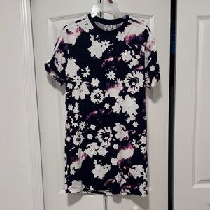 Adidas top with floral design. Features black and purple hues. Ideal for casual wear.