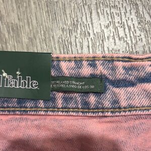 Stylish pink high-waisted jeans. Perfect for casual outings. 90s straight leg
