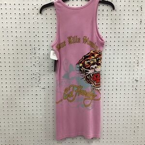 Ed Hardy Design Sleeves Short Dress, Size Medium, Color Pink Multi Color NWT
