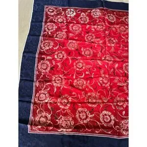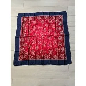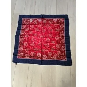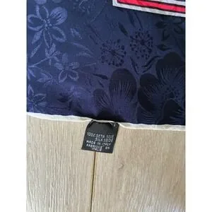 Vintage 100% Silk Scarf Italy Floral Jacquard Navy Blue Red Square Foulard