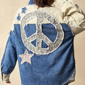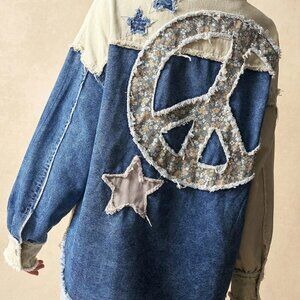 This casual, oversized shacket features a vibrant multicolor patchwork design. It has a regular length, collar neckline, and wrist-length sleeves, making it perfect for spring and fall.