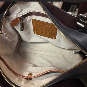 Great handbag from Coach. It is from the Rogue collection. It is dark blue color. Very lightweight. And super cute. Love the C chain straps. See photos for more details.