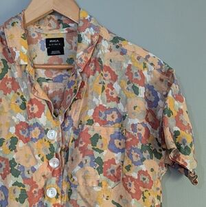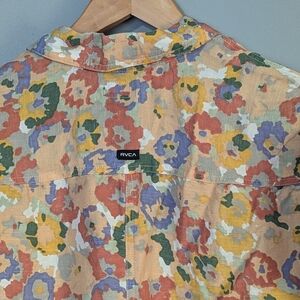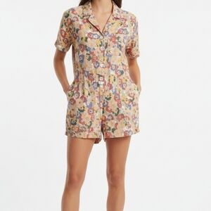 RVCA Women's Linen Blend Floral Hippie Shorts Blossom Romper Pockets