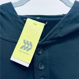 All in Motion Men's Black Button Long Sleeve Thumb Hole Hoodie Size XL