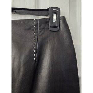 Banana Republic Leather Pencil Skirt Contrast Stitching Size 2 Brown Y2K Lined