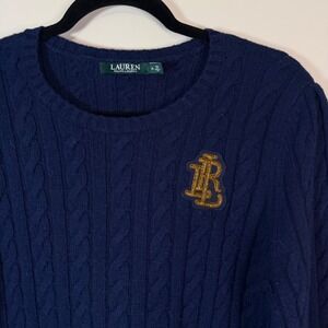 Navy cable knit sweater by Lauren Ralph Lauren.