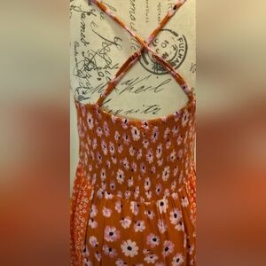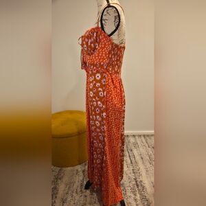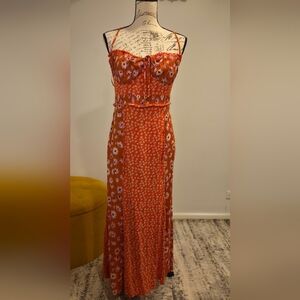 Free People Vibrant Orange Floral Maxi Dress, Size L.