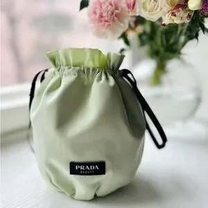 Prada Beauty Pouch Drawstring Light Green Dust Bag .