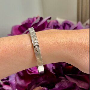 This authentic Swarovski sterling silver bangle is very elegant and classy with it's pave crystals on the front. The bangle is in good condition and sparkles romantically in the light.