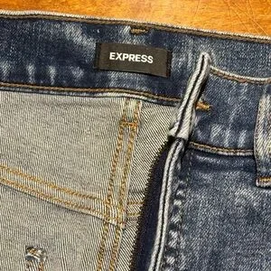 Express Modern Straight Super High Rise Distressed jeans.