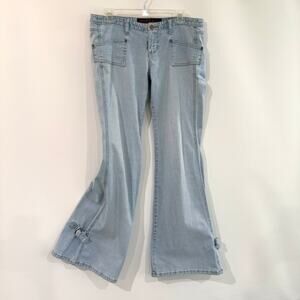 Vintage 90s Y2K Mudd Jeans Low Rise Flare Bell Brass Buckle Light Wash Stretch